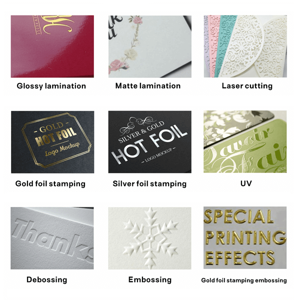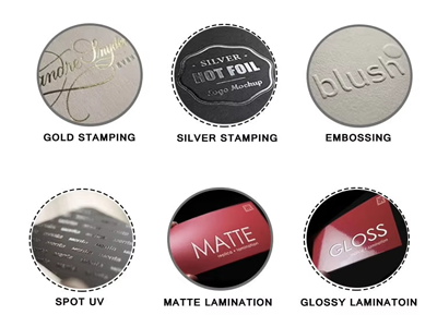 - Hot Stamping – Creates a metallic finish for a premium and luxurious appearance.